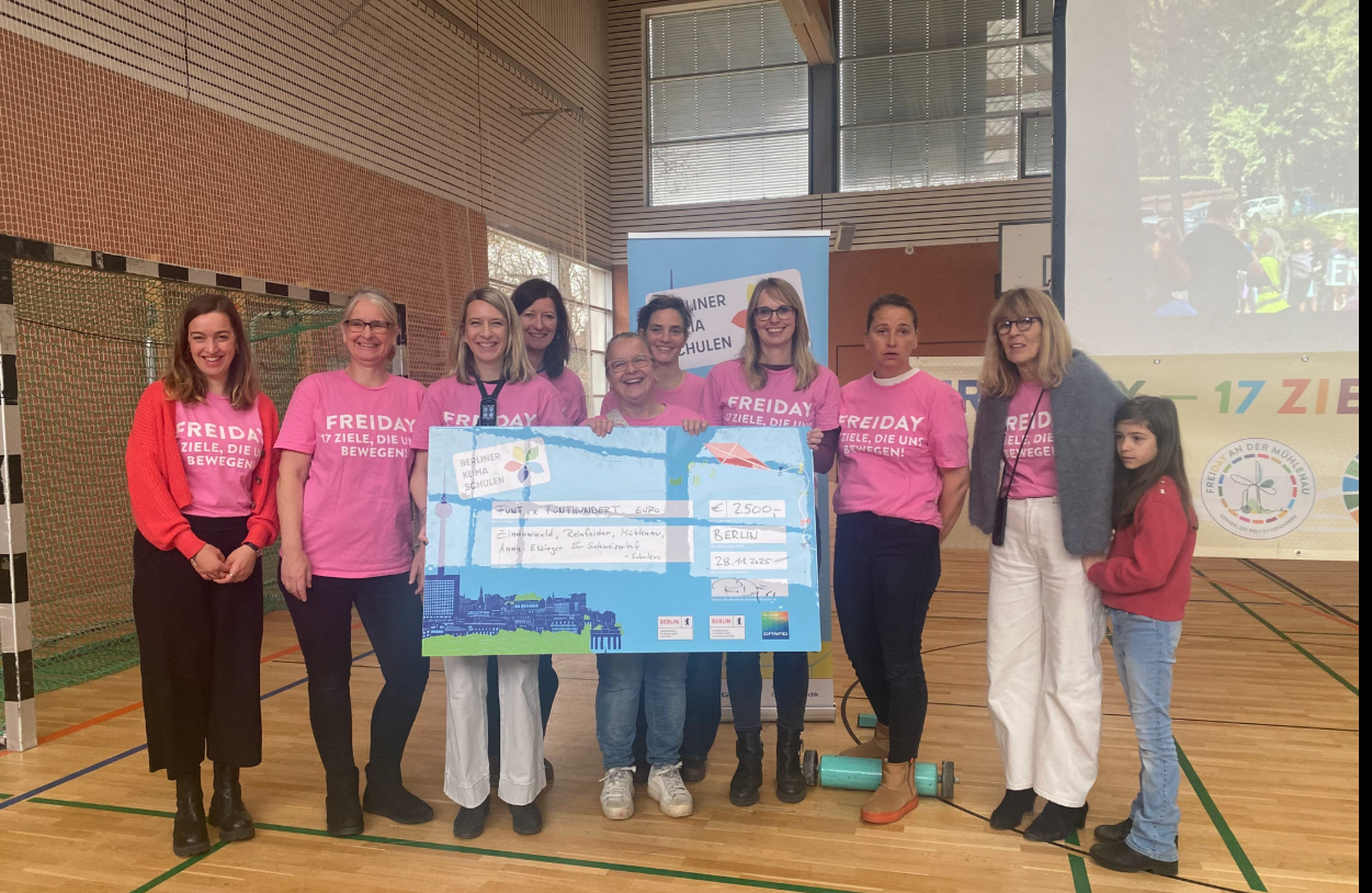 Wir wurden mit 500 € Preisgeld pro Schule für unsere herausragenden Aktivitäten zum Klimaschutz ausgezeichnet und freuen uns sehr darüber! Uns allen wurde bei den Erinnerungen an den wunderschönen Tag am 4. Juli 2025 sehr warm ums Herz. Der gemeinsame 17-Ziele-Umzug mit anschließendem FreiDay-Fest war ein rundum gelungener Tag.